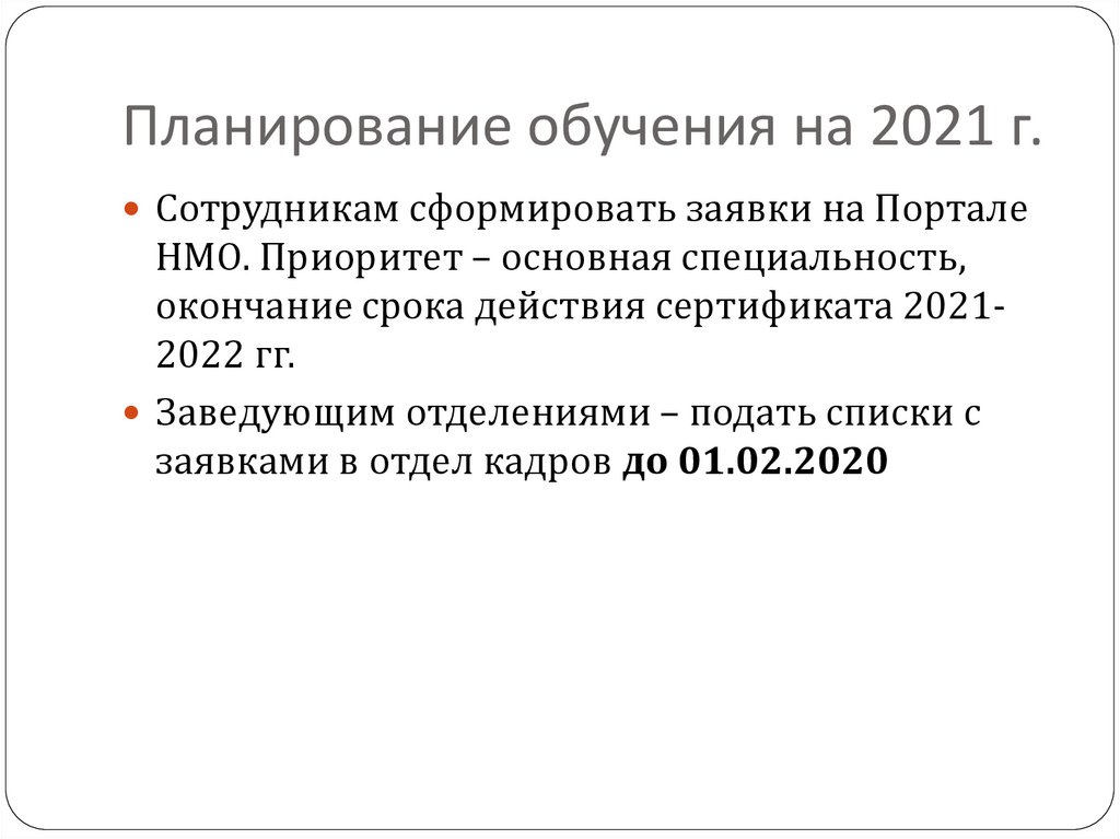 Планирование обучения на 2021 г.Сотрудникам сформировать заявки на Портале