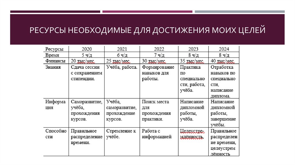 РЕСУРСЫ НЕОБХОДИМЫЕ ДЛЯ ДОСТИЖЕНИЯ МОИХ ЦЕЛЕЙ