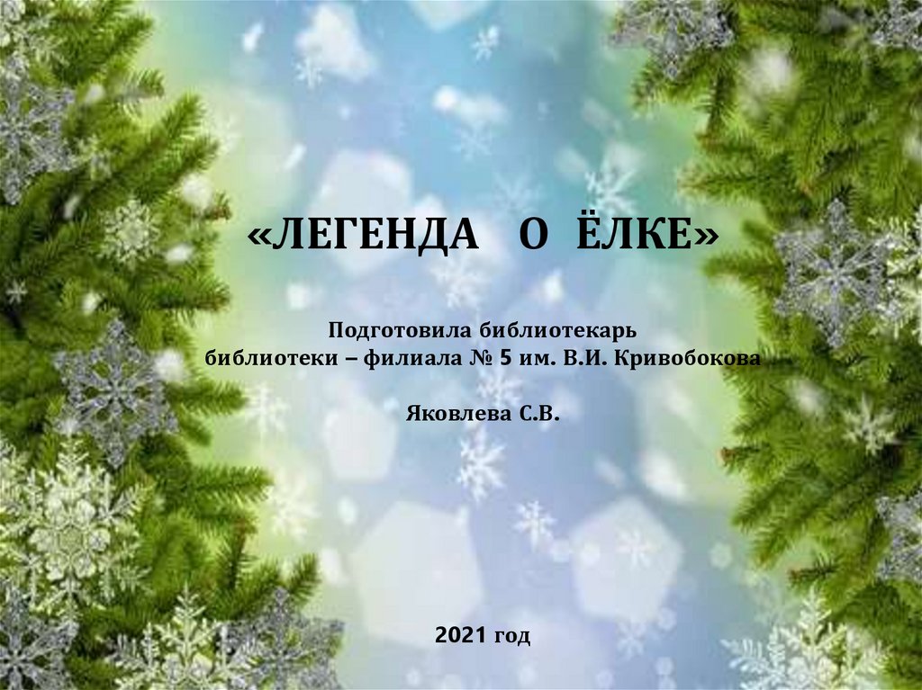 «ЛЕГЕНДА О ЁЛКЕ»Подготовила библиотекарь