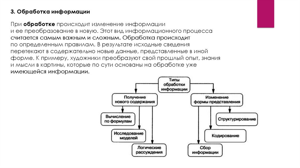 3. Обработка информацииПри обработке происходит изменение информации