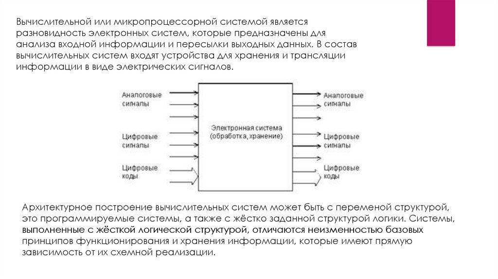Вычислительной или микропроцессорной системой являетсяразновидность электронных систем, которые предназначены для