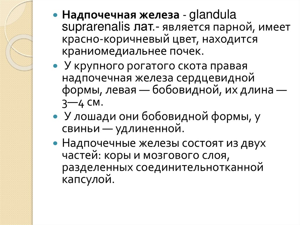 Надпочечная железа - glandulasuprarenalis лат.- является парной, имеет