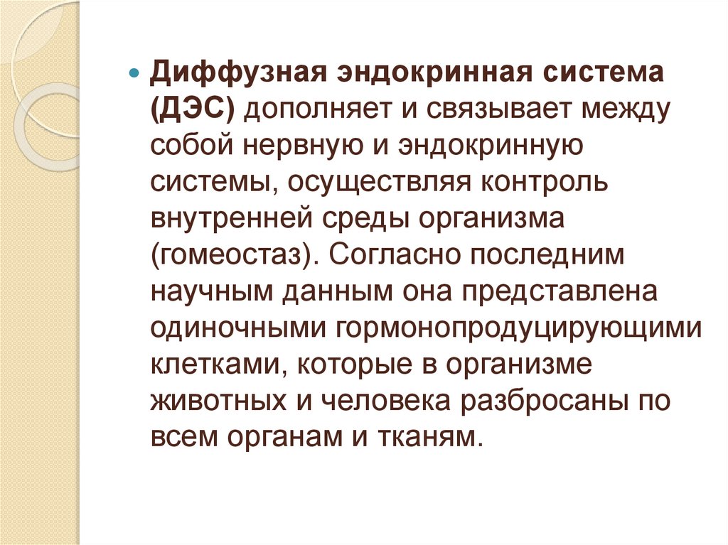 Диффузная эндокринная система(ДЭС) дополняет и связывает между