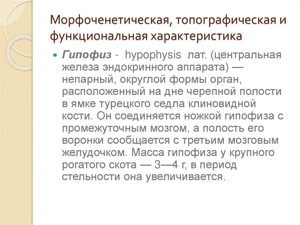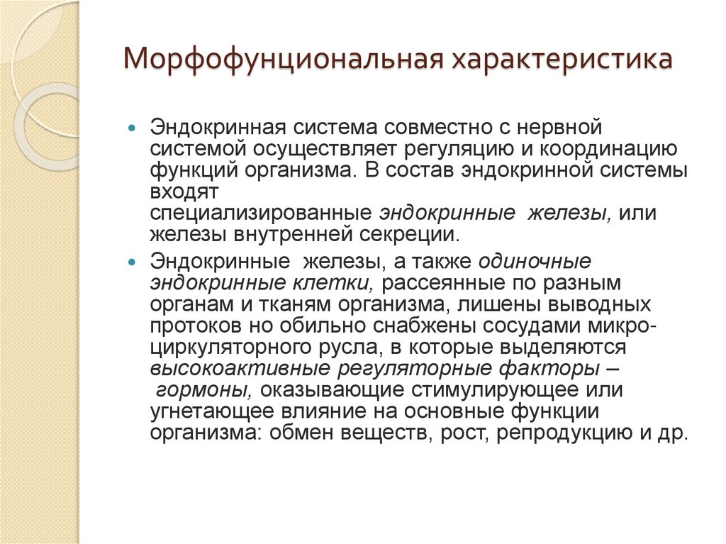 Морфофунциональная характеристикаЭндокринная система совместно с нервной