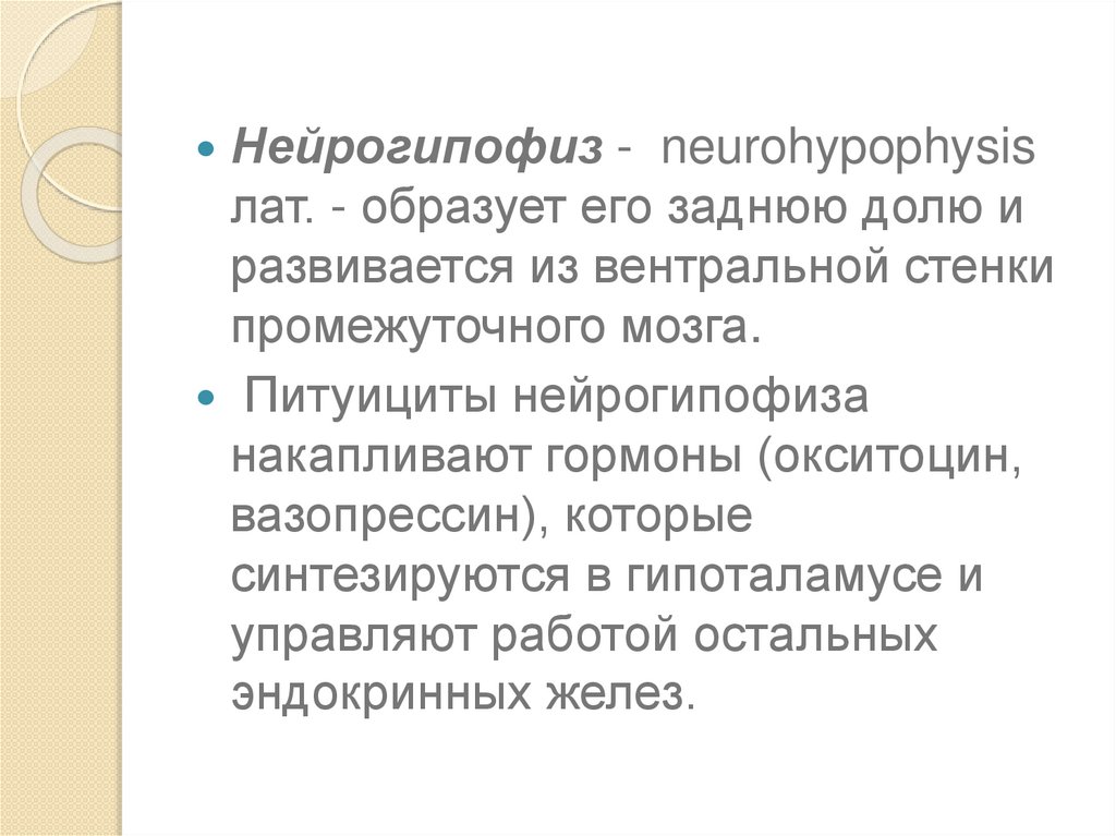 Нейрогипофиз - neurohypophysisлат. - образует его заднюю долю и