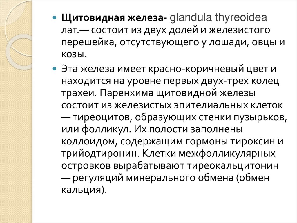 Щитовидная железа- glandula thyreoideaлат.— состоит из двух долей и железистого