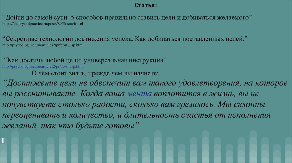 Статья:“Дойти до самой сути: 5 способов правильно ставить цели и добиваться желаемого”