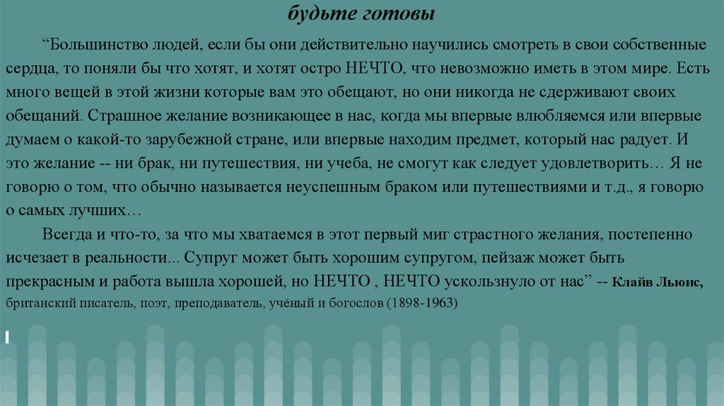 прекрасным и работа вышла хорошей, но НЕЧТО , НЕЧТО ускользнуло от нас” -- Клайв Льюис,