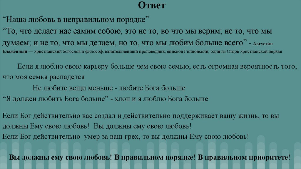 Вы должны ему свою любовь! В правильном порядке! В правильном приоритете!