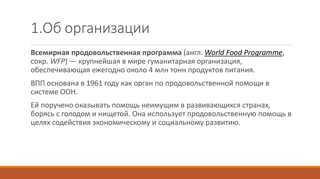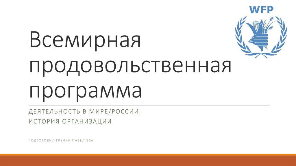 1.Об организацииВсемирная продовольственная программа (англ. World Food Programme,