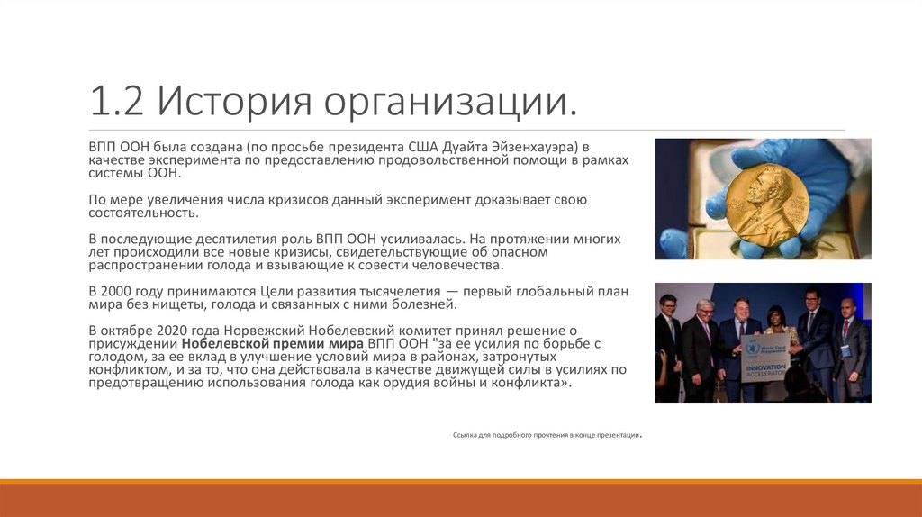 1.2 История организации.ВПП ООН была создана (по просьбе президента США Дуайта Эйзенхауэра) в