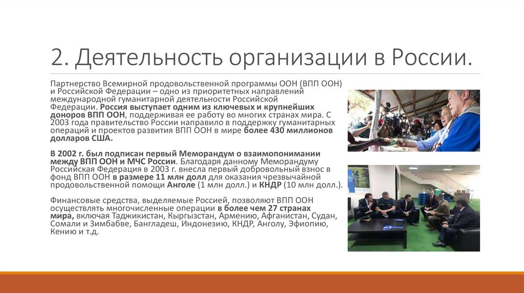 2. Деятельность организации в России.Партнерство Всемирной продовольственной программы ООН (ВПП ООН)