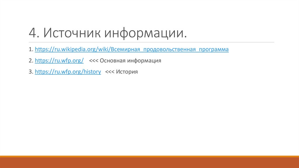 4. Источник информации.1. https://ru.wikipedia.org/wiki/Всемирная_продовольственная_программа