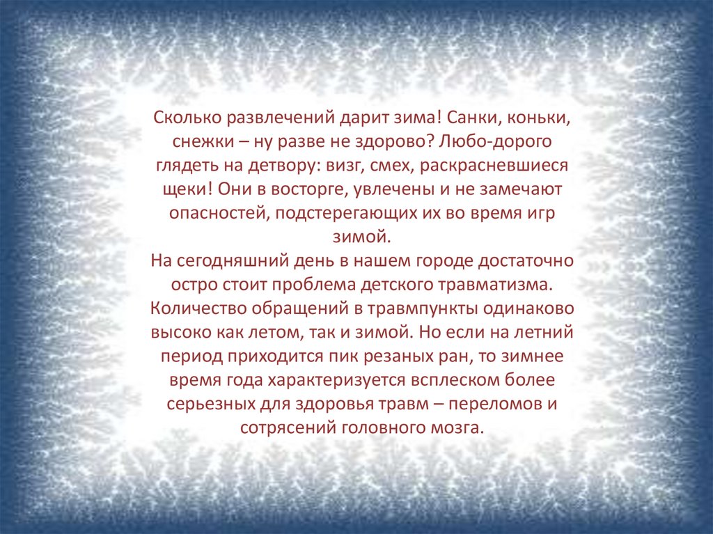 Детский травматизм зимой.