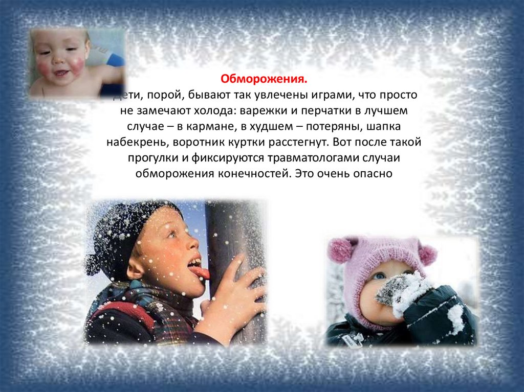 Обморожения.Дети, порой, бывают так увлечены играми, что просто