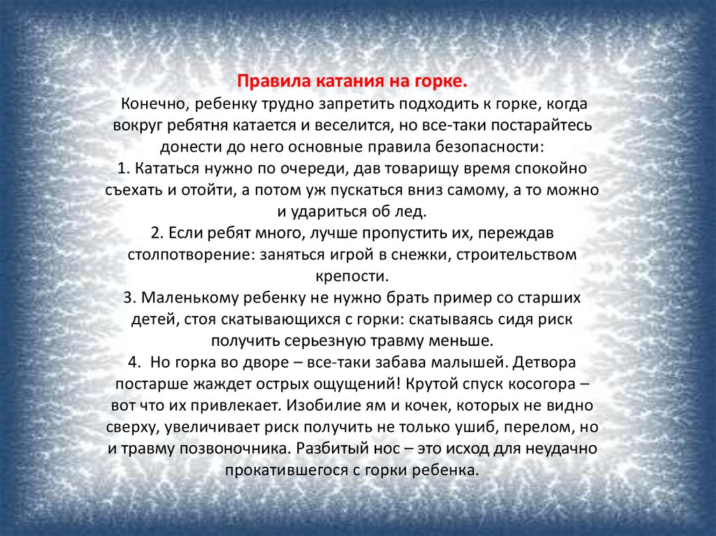Правила катания на горке.Конечно, ребенку трудно запретить подходить к горке, когда