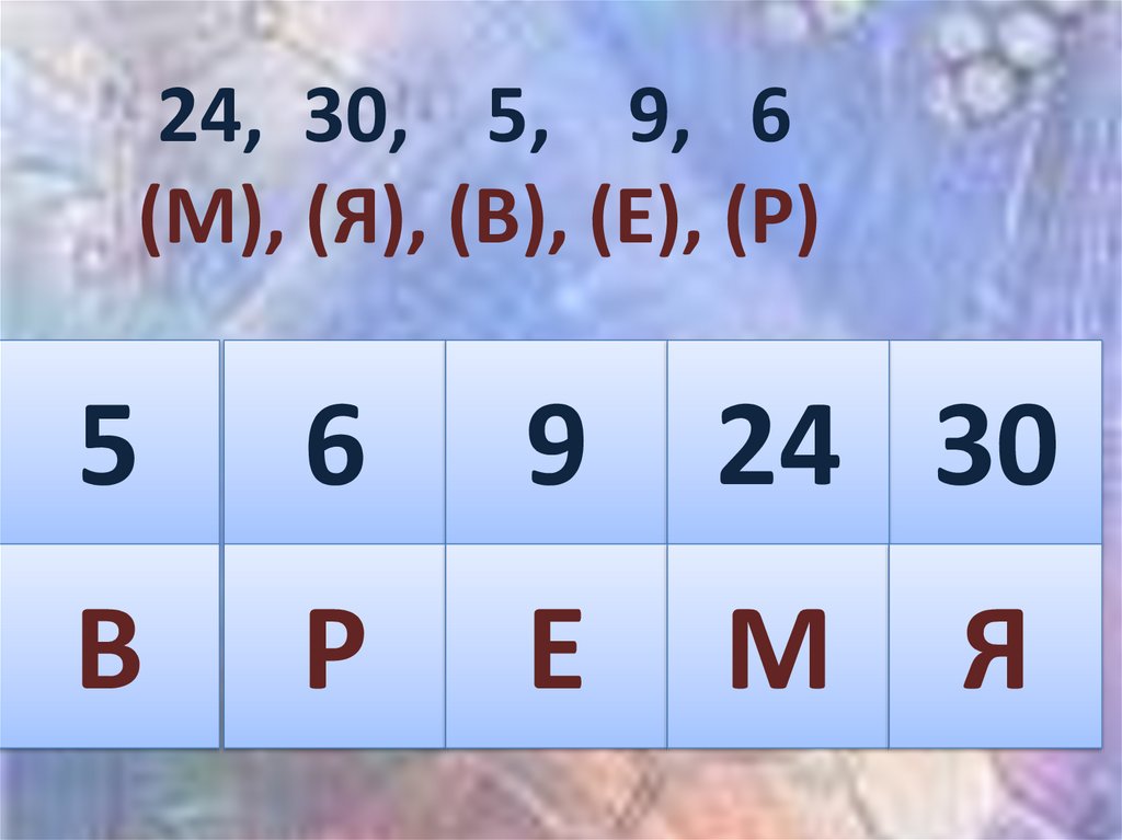 24, 30, 5, 9, 6(М), (Я), (В), (Е), (Р)
