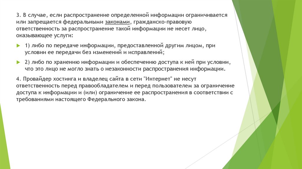 3. В случае, если распространение определенной информации ограничиваетсяили запрещается федеральными законами, гражданско-правовую