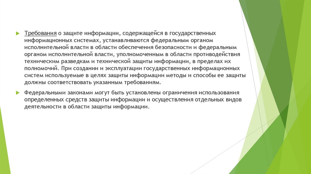 Требования о защите информации, содержащейся в государственныхинформационных системах, устанавливаются федеральным органом
