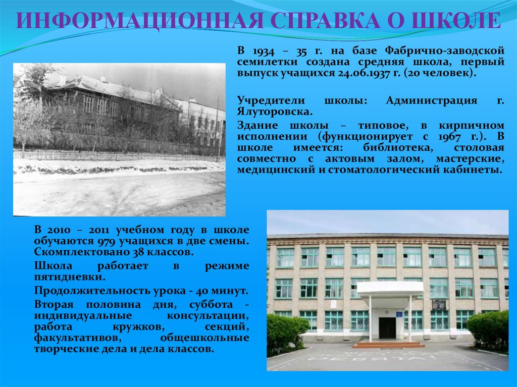 ИНФОРМАЦИОННАЯ СПРАВКА О ШКОЛЕВ 1934 – 35 г. на базе Фабрично-заводской