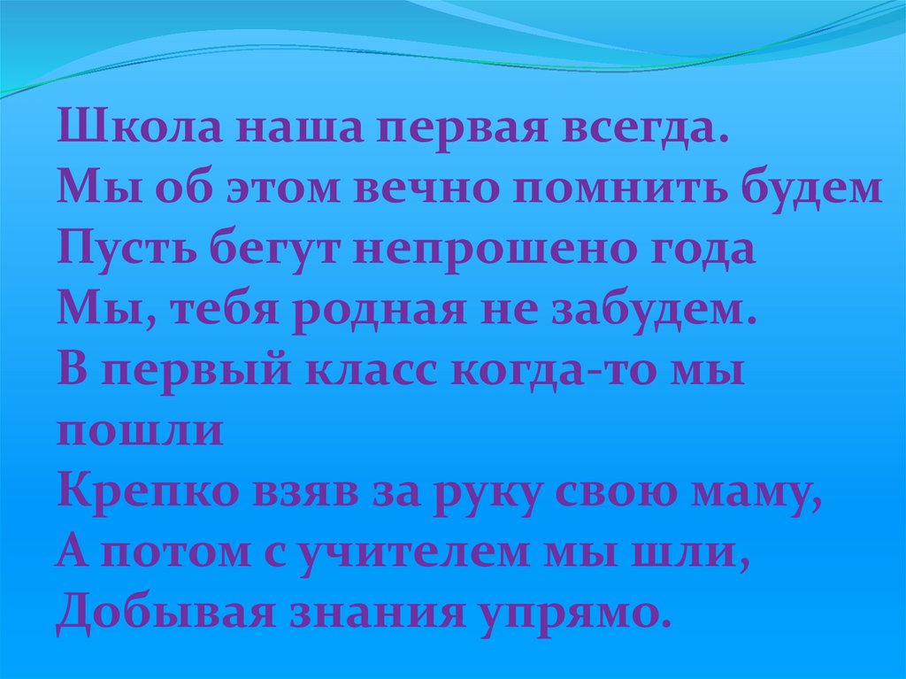 Школа наша первая всегда.Мы об этом вечно помнить будем