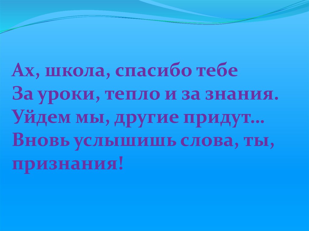 Ах, школа, спасибо тебеЗа уроки, тепло и за знания.