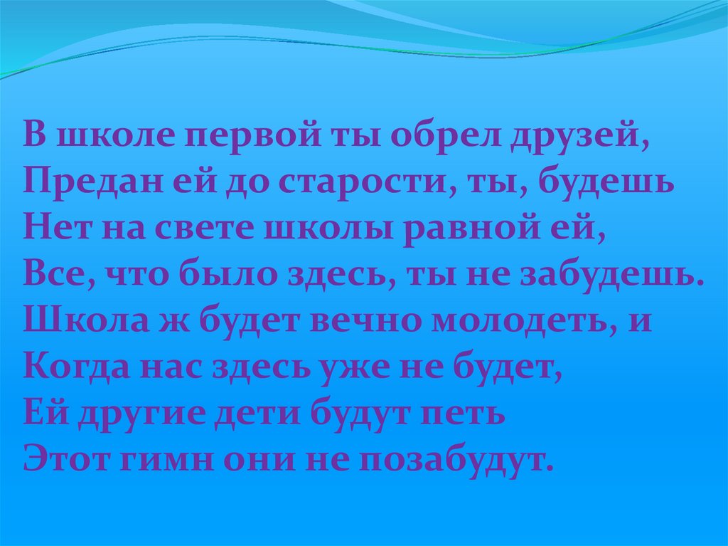 В школе первой ты обрел друзей,Предан ей до старости, ты, будешь