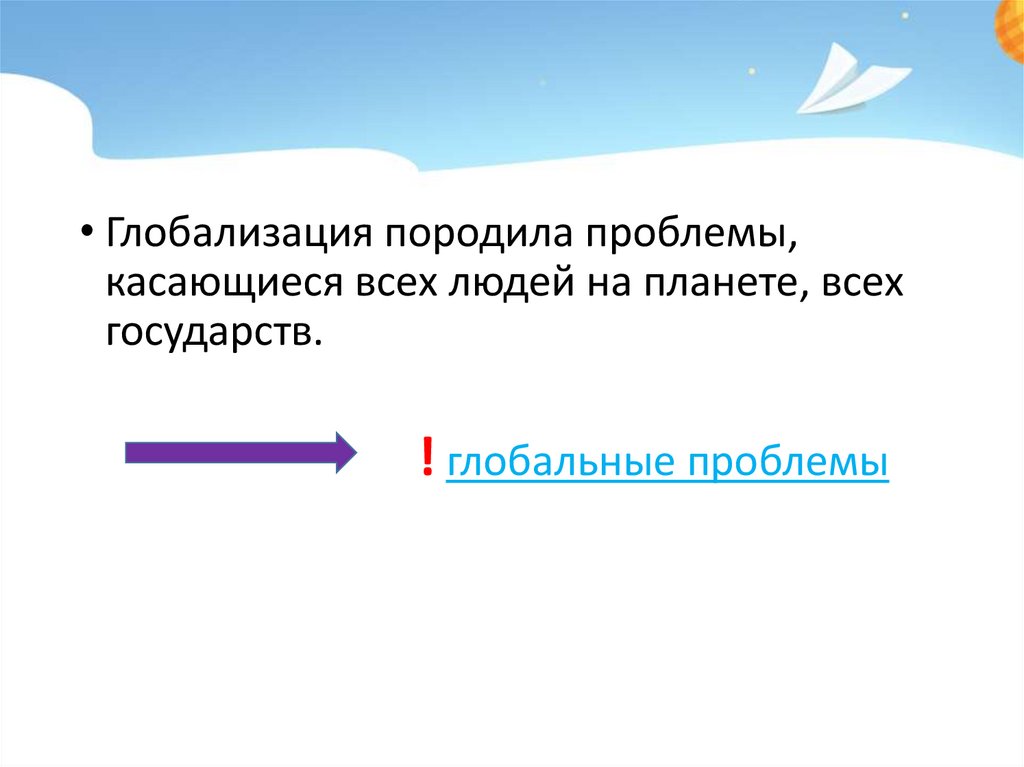 • Глобализация породила проблемы,касающиеся всех людей на планете, всех