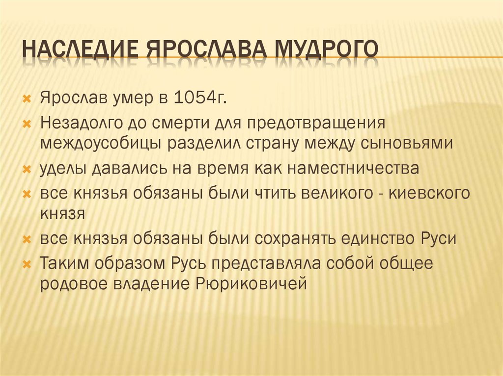 НАСЛЕДИЕ ЯРОСЛАВА МУДРОГОЯрослав умер в 1054г.