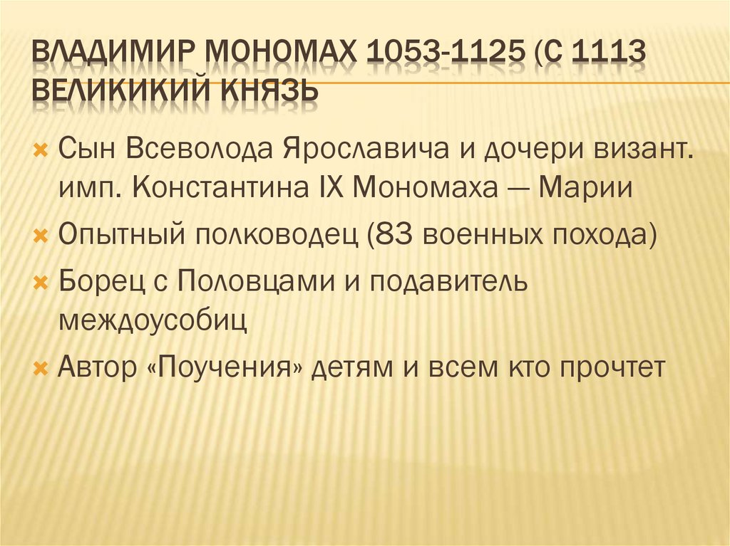 ВЛАДИМИР МОНОМАХ 1053-1125 (С 1113ВЕЛИКИКИЙ КНЯЗЬ