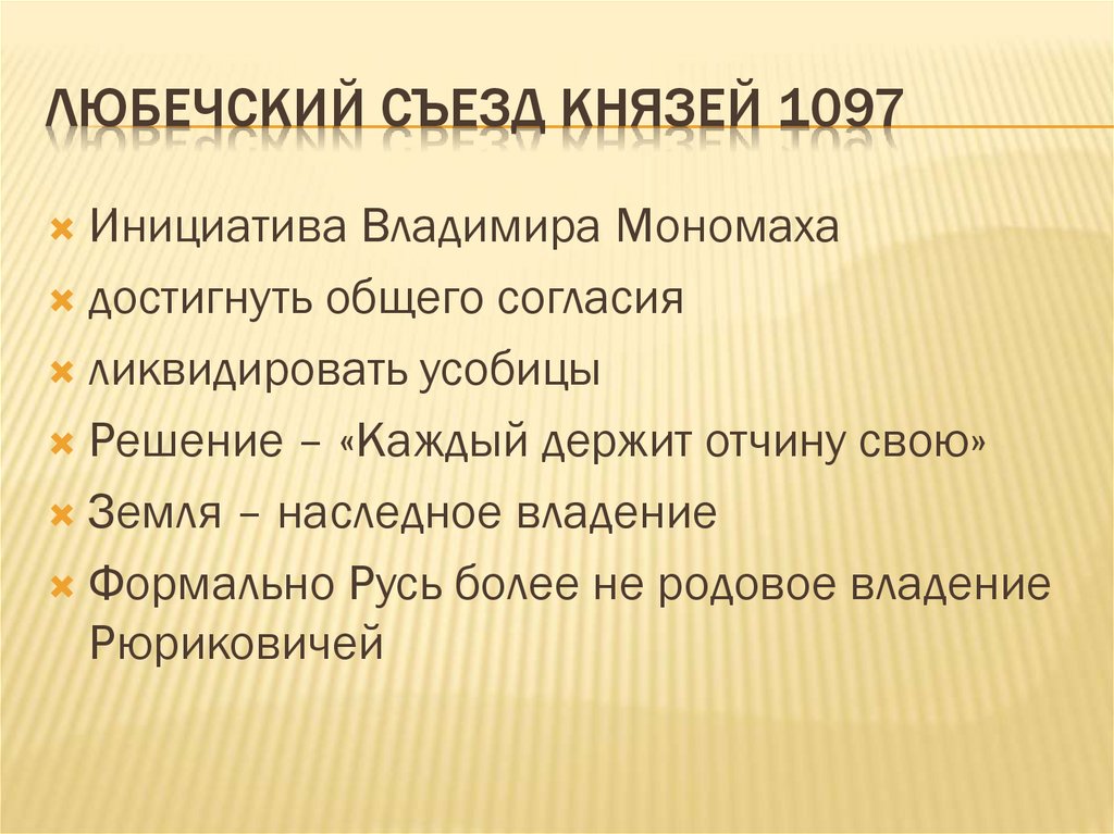 ЛЮБЕЧСКИЙ СЪЕЗД КНЯЗЕЙ 1097Инициатива Владимира Мономаха