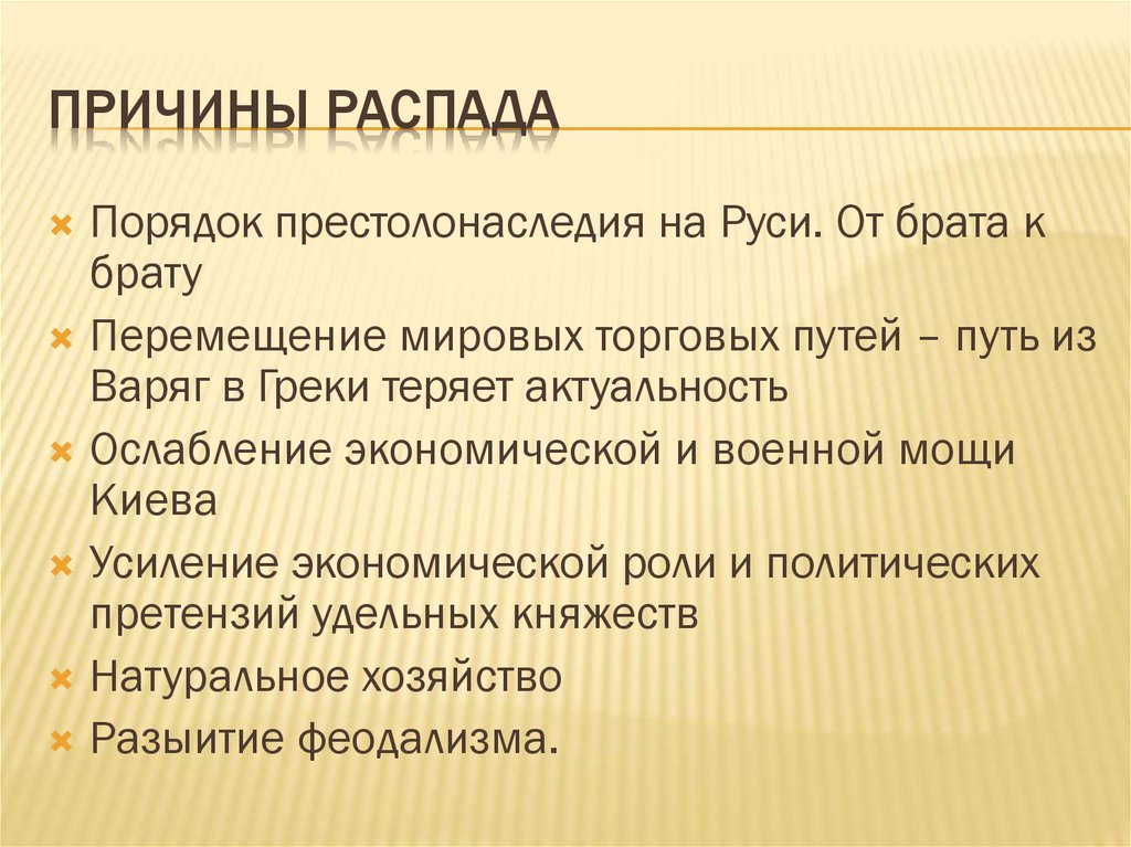 ПРИЧИНЫ РАСПАДАПорядок престолонаследия на Руси. От брата к