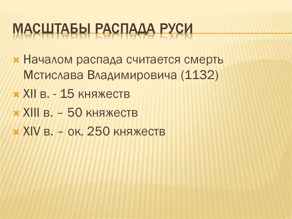 МАСШТАБЫ РАСПАДА РУСИНачалом распада считается смерть