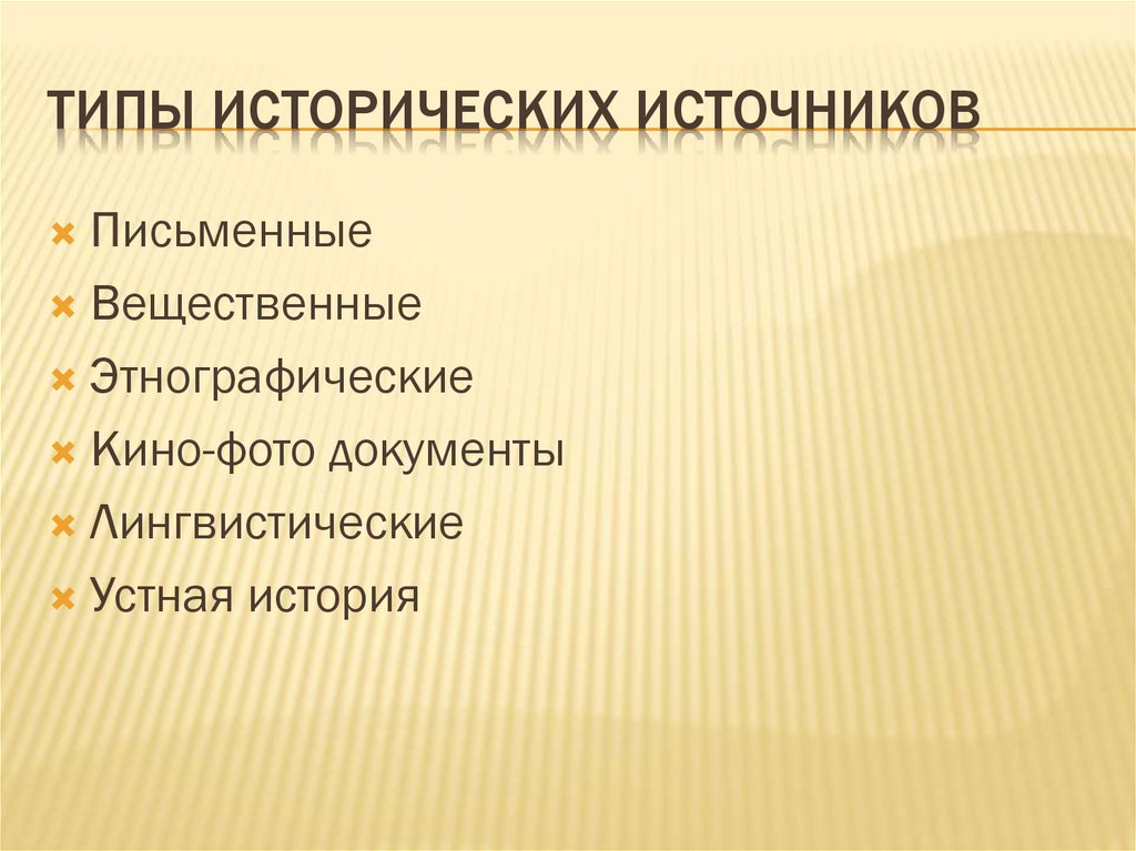 ТИПЫ ИСТОРИЧЕСКИХ ИСТОЧНИКОВПисьменные
