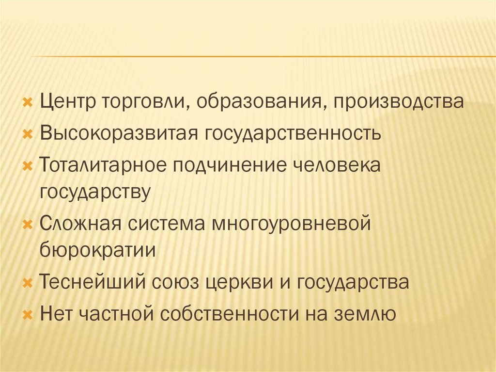 Центр торговли, образования, производстваВысокоразвитая государственность