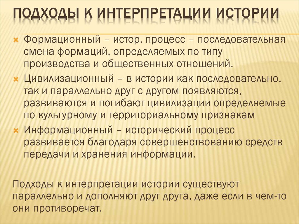ПОДХОДЫ К ИНТЕРПРЕТАЦИИ ИСТОРИИФормационный – истор. процесс – последовательная