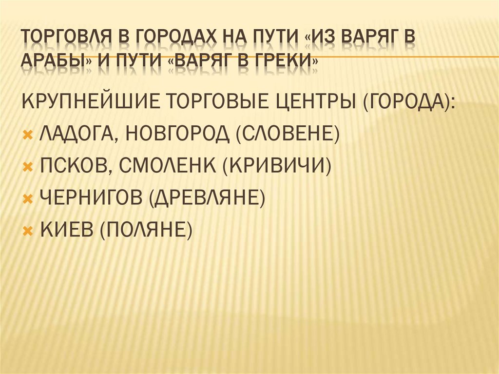 ТОРГОВЛЯ В ГОРОДАХ НА ПУТИ «ИЗ ВАРЯГ ВАРАБЫ» И ПУТИ «ВАРЯГ В ГРЕКИ»