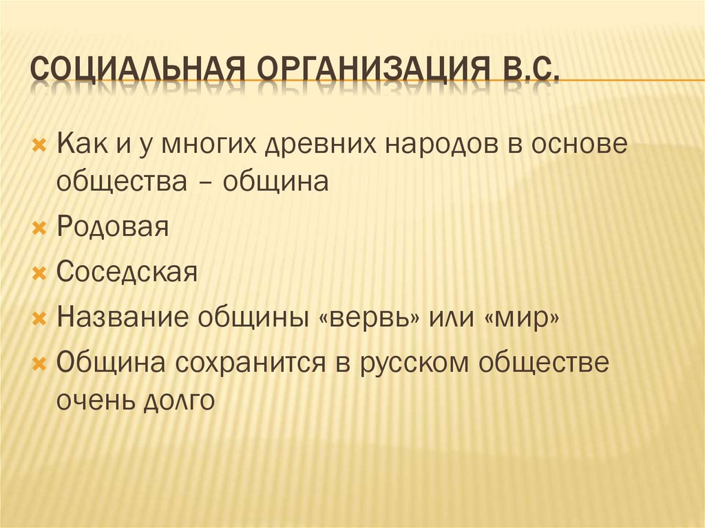СОЦИАЛЬНАЯ ОРГАНИЗАЦИЯ В.С.Как и у многих древних народов в основе