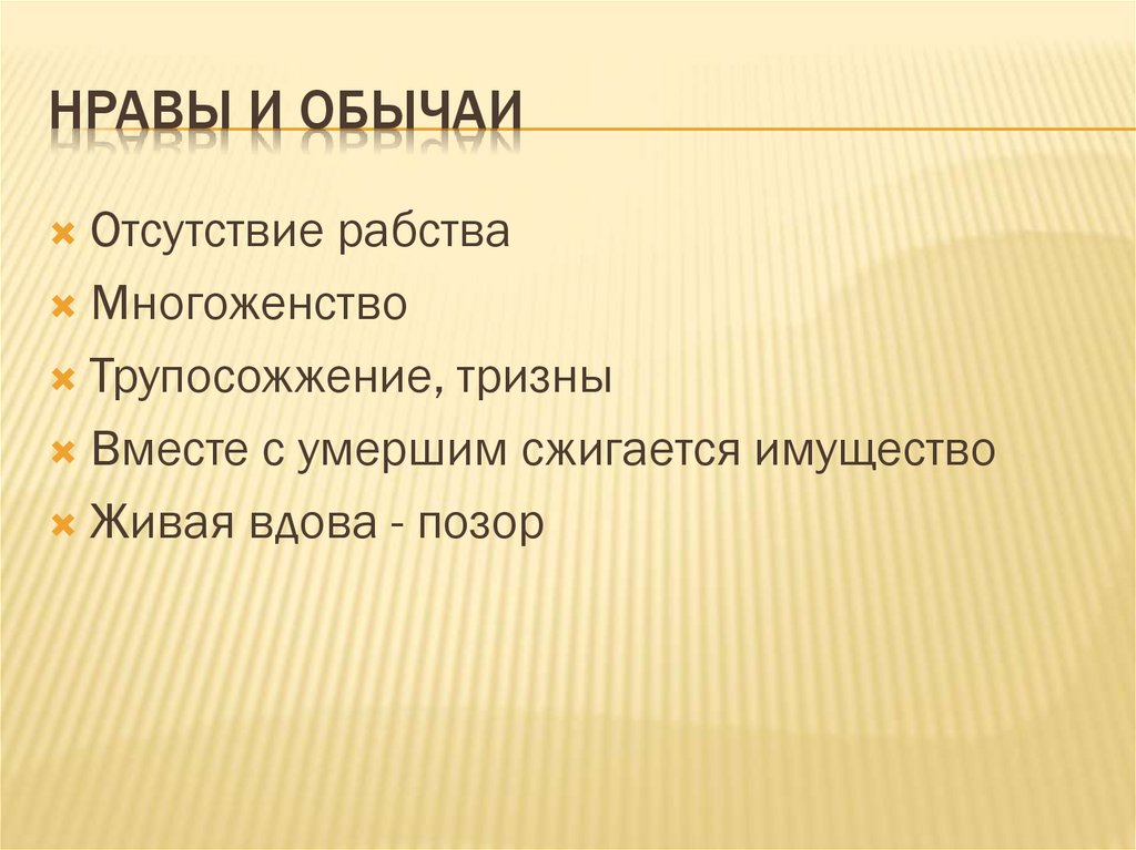 НРАВЫ И ОБЫЧАИОтсутствие рабства