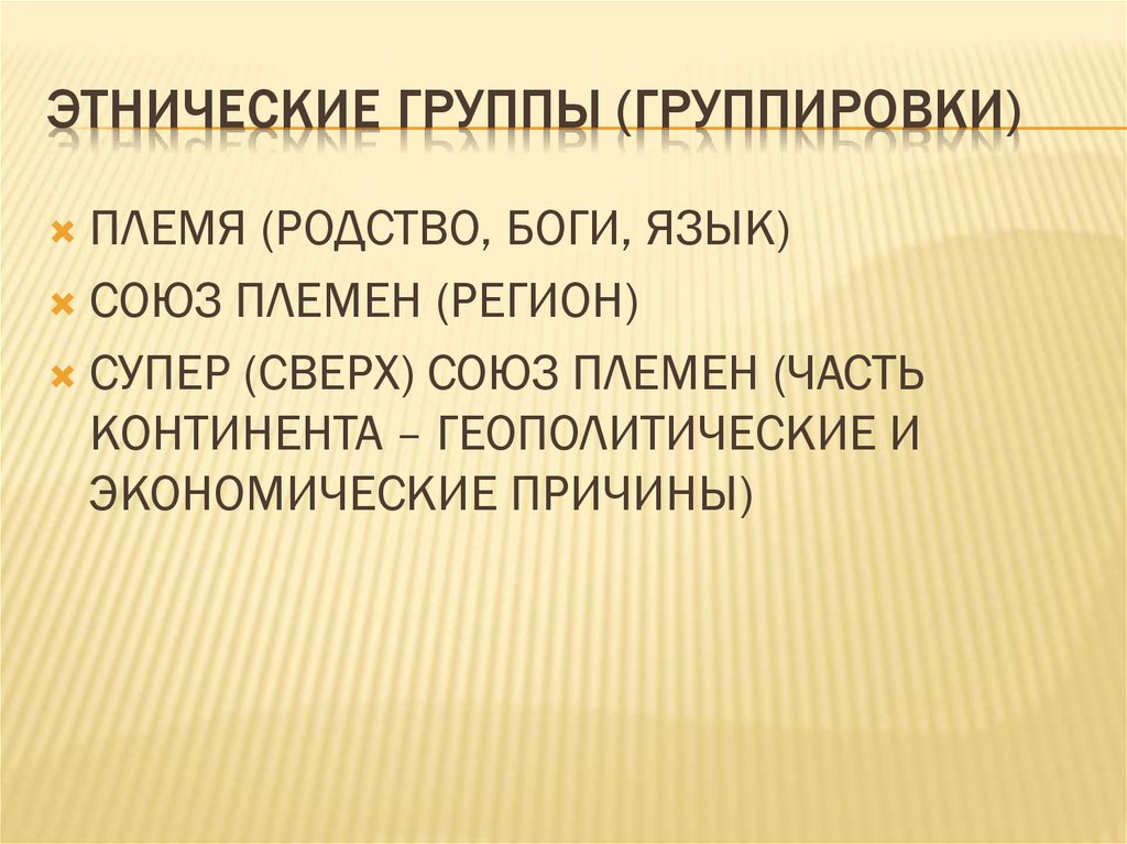 ЭТНИЧЕСКИЕ ГРУППЫ (ГРУППИРОВКИ)ПЛЕМЯ (РОДСТВО, БОГИ, ЯЗЫК)