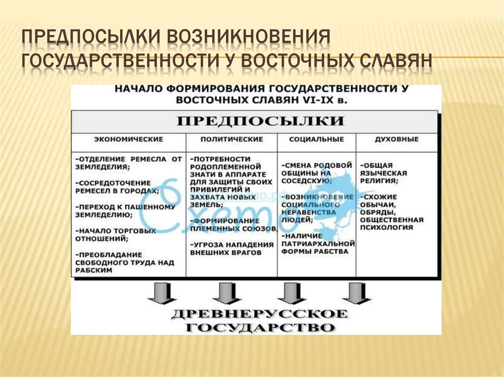 ПРЕДПОСЫЛКИ ВОЗНИКНОВЕНИЯГОСУДАРСТВЕННОСТИ У ВОСТОЧНЫХ СЛАВЯН