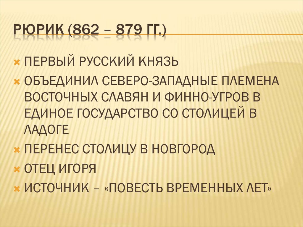 РЮРИК (862 – 879 ГГ.)ПЕРВЫЙ РУССКИЙ КНЯЗЬ