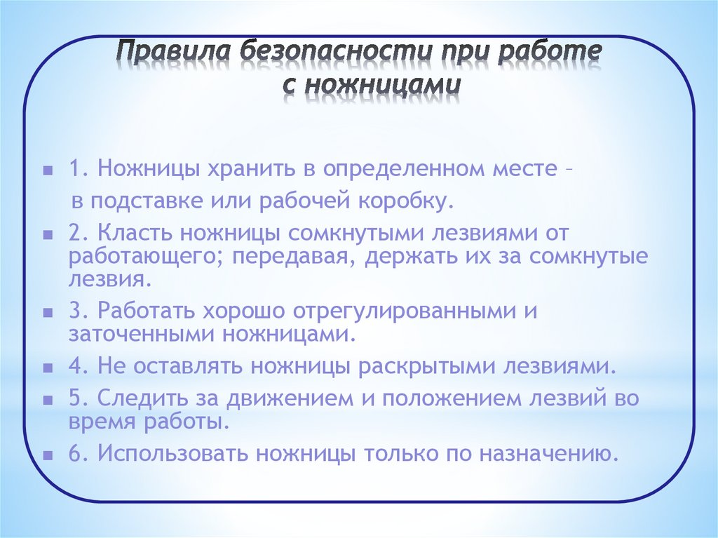 6. Использовать ножницы только по назначению.