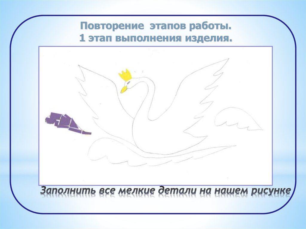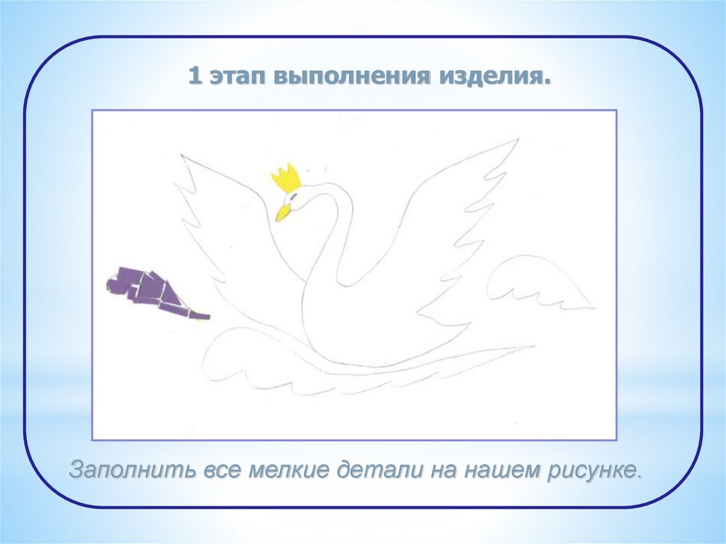 1 этап выполнения изделия.Заполнить все мелкие детали на нашем рисунке.