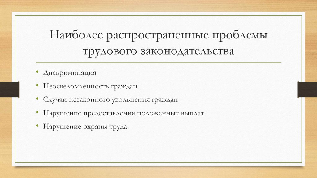 Наиболее распространенные проблемытрудового законодательства