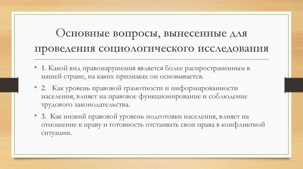 Основные вопросы, вынесенные дляпроведения социологического исследования