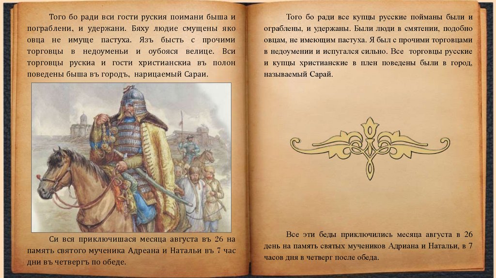Того бо ради вси гости руския поимани быша ипограблени, и удержани. Бяху людие смущены яко