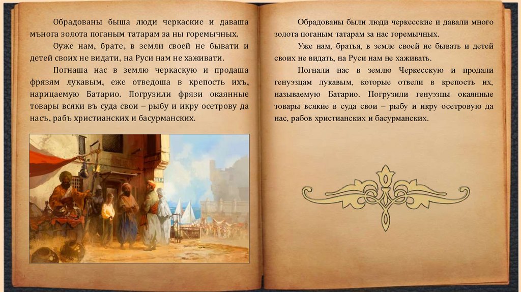 Обрадованы быша люди черкаские и давашамънога золота поганым татарам за ны горемычных.