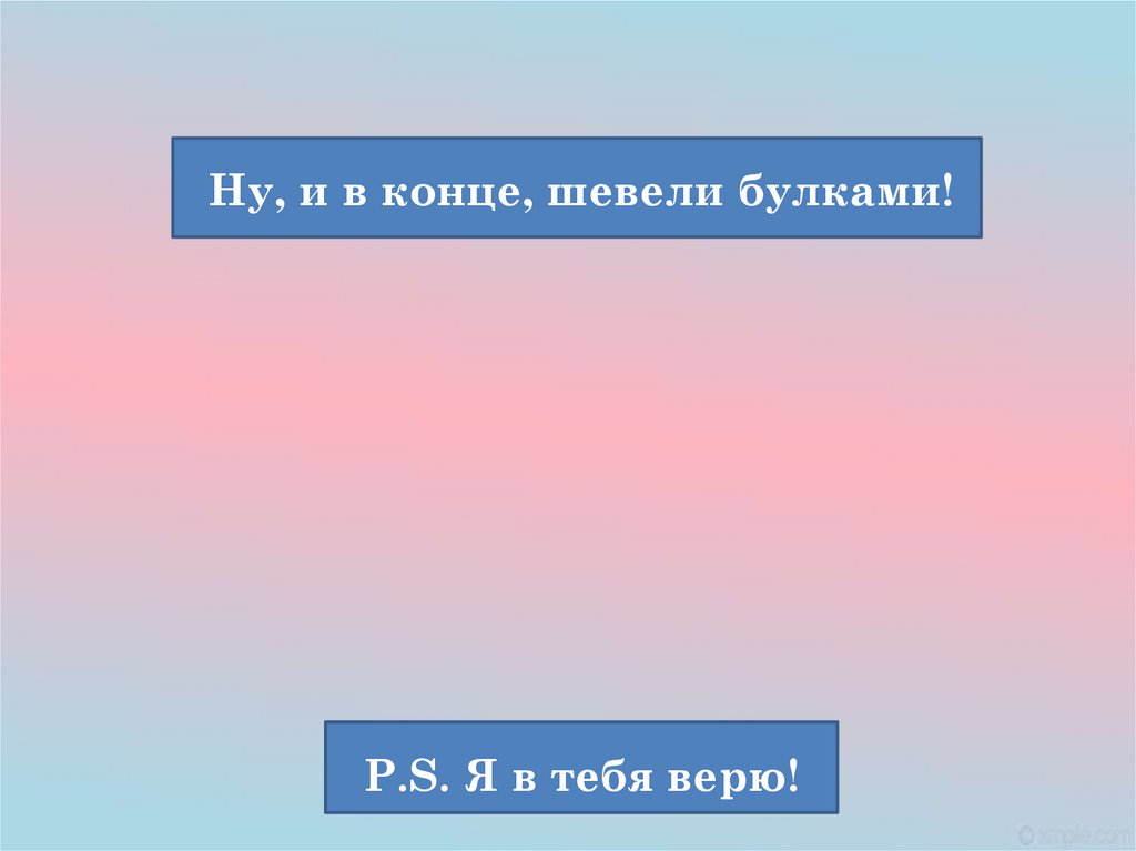 Ну, и в конце, шевели булками!P.S. Я в тебя верю!