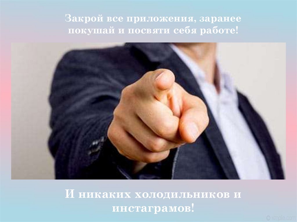 Закрой все приложения, заранеепокушай и посвяти себя работе!